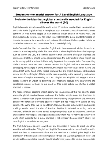 But the future may be a little bit. In a globalizing world, where language governs essay for english language society extensively the dominance of English has effects on linguistic and communicative inequality between native and non-native speakers Tsuda, Research on globalisation argues strong evidence that English is the lingua franca or international language and communication of today.